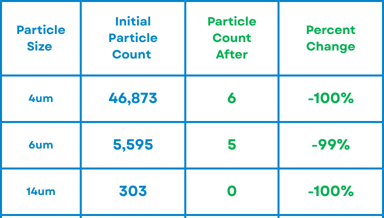 Die Ergebnisse waren unbestreitbar: Unser Partner konnte die Kontamination erfolgreich auf die genauen ISO-Reinheitsgrade reduzieren, die für den sicheren und zuverlässigen Betrieb des Hydrauliksystems der Anlage erforderlich sind.